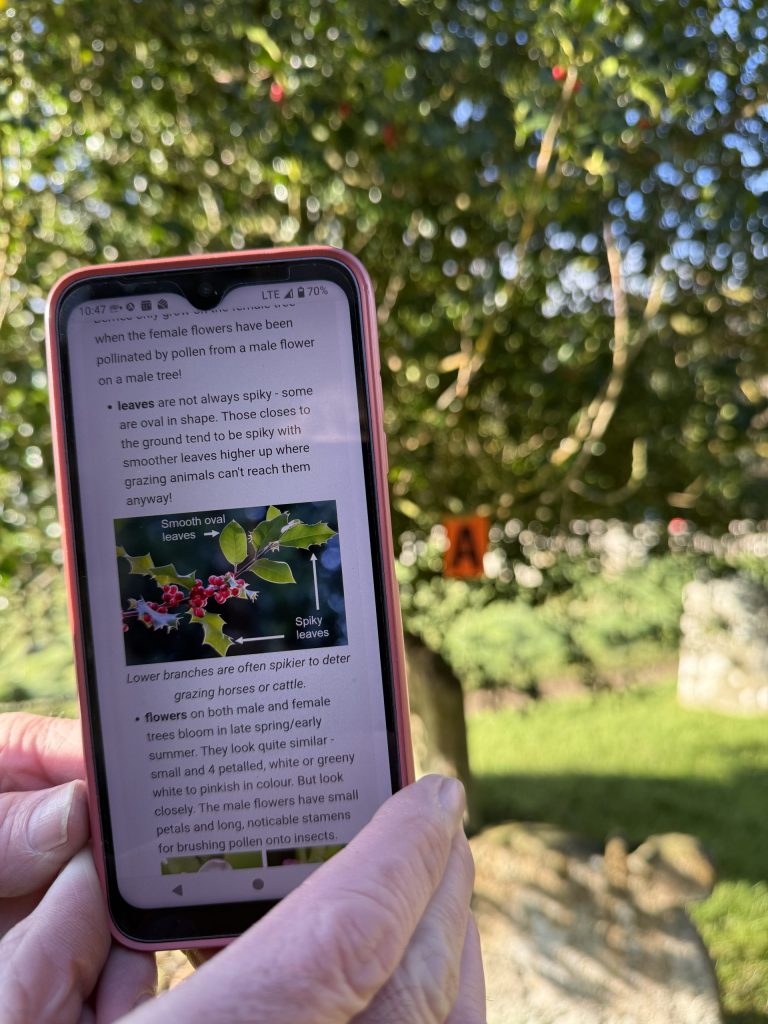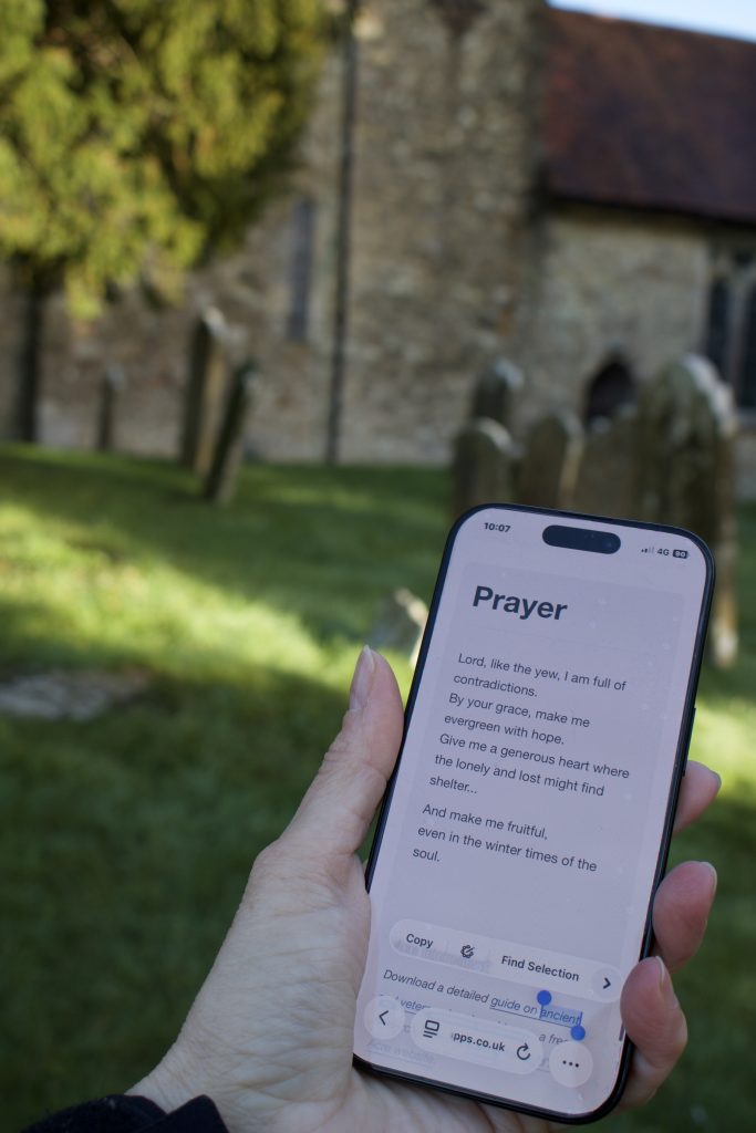 There are eight stops on the All Saints trail such as the Yew, the Holly and the Fern and more could be added in the future. Using a QR code on their phone, walkers can access information about the species, its links to the natural world and its uses, as well as its connections to culture, history or folklore. There’s a quote or poem from literature, then a short reflection (does the yew make you consider your strengths and weaknesses or the holly remind you to forgive occasional spikiness), and then there’s a prayer.