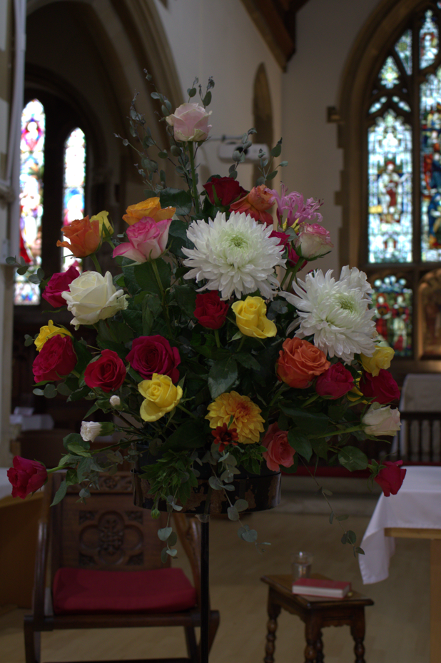Everyone who attends the All Souls’ service at St John’s Church in Alresford brings a flower to remember a loved one. During the service these are brought up to the altar where flower arrangers turn a bare pedestal into a colourful display called a bouquet of memories – a symbol of turning sadness into joy.