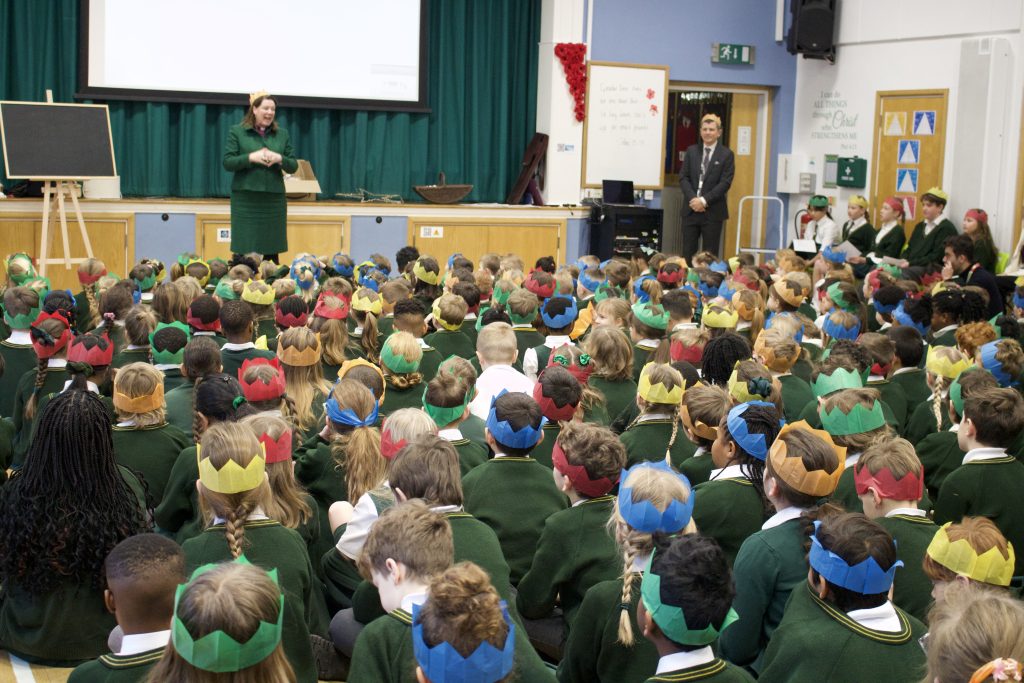 St James Headteacher, Alastair Brown, said, “It’s not every day you get a bishop coming to your school, but to look out and see all the children wearing their crowns on their heads, 407 crowns, it was just lovely. The children love awe and wonder, that’s what engages them, but I thought that it was lovely this morning. This was their first day back at school for 2026, and a perfect way to set the term and the year off. It wasn’t all noise and excitement. There was a time for reflection and quiet, and I think Bishop Rhiannon brought that beautifully to St James today.”