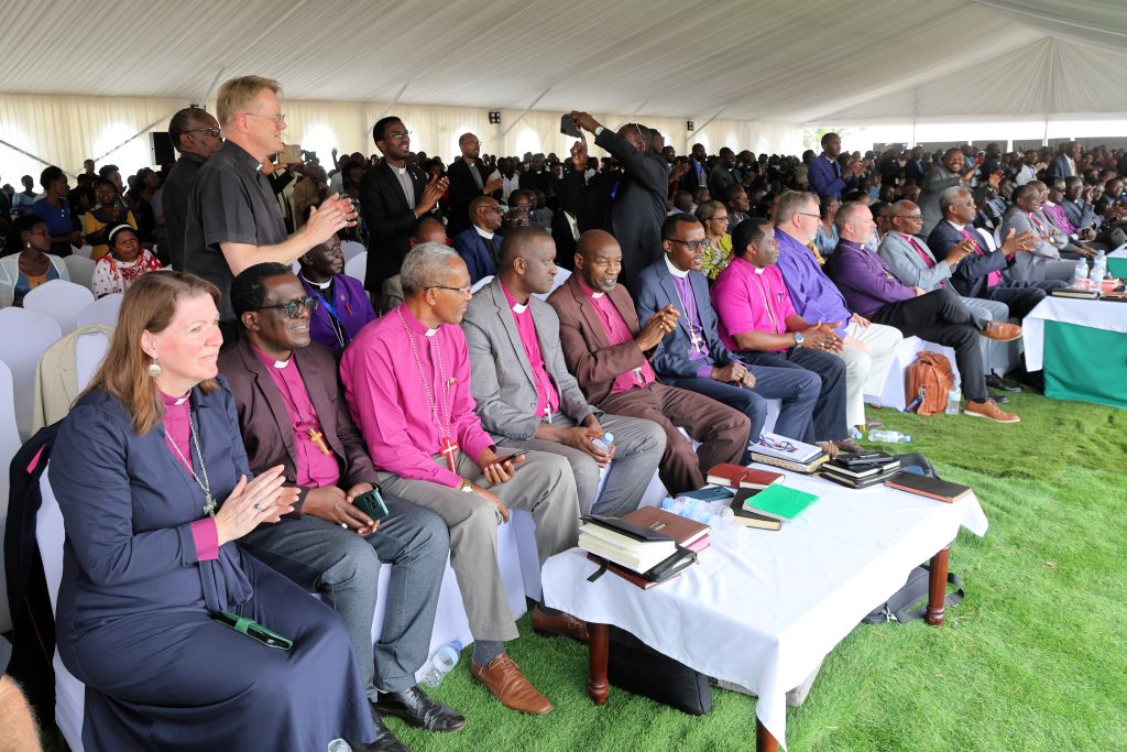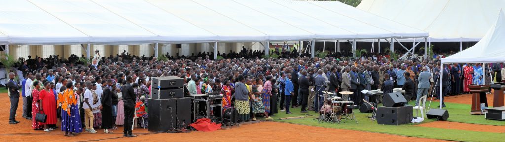 The climax of the celebrations was a service led by the Archbishop of Rwanda, Dr Laurent Mbanda, and attended by Rwandan Bishops, pastors from across the country and thousands of church members. The service began with a parade of hundreds of people, led by a youth band and including the Boys and Girls Brigade, Mothers Union, Fathers Union and Youth Union, the pastors, bishops and invited guests.