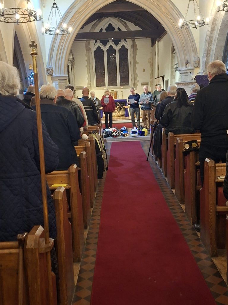 Revd Tom Benson said, “There were around 50 attendees, supported by the Somborne Singers and members of the local church and it was a really positive evening, followed up by a visit to The Crown Inn. Members of Mental Health Motorbike and the Christian Motorcyclists Association were heavily involved and the collection raised £175 for MH Motorbike who do great work in raising awareness and extending peer support networks for bikers by bikers.”