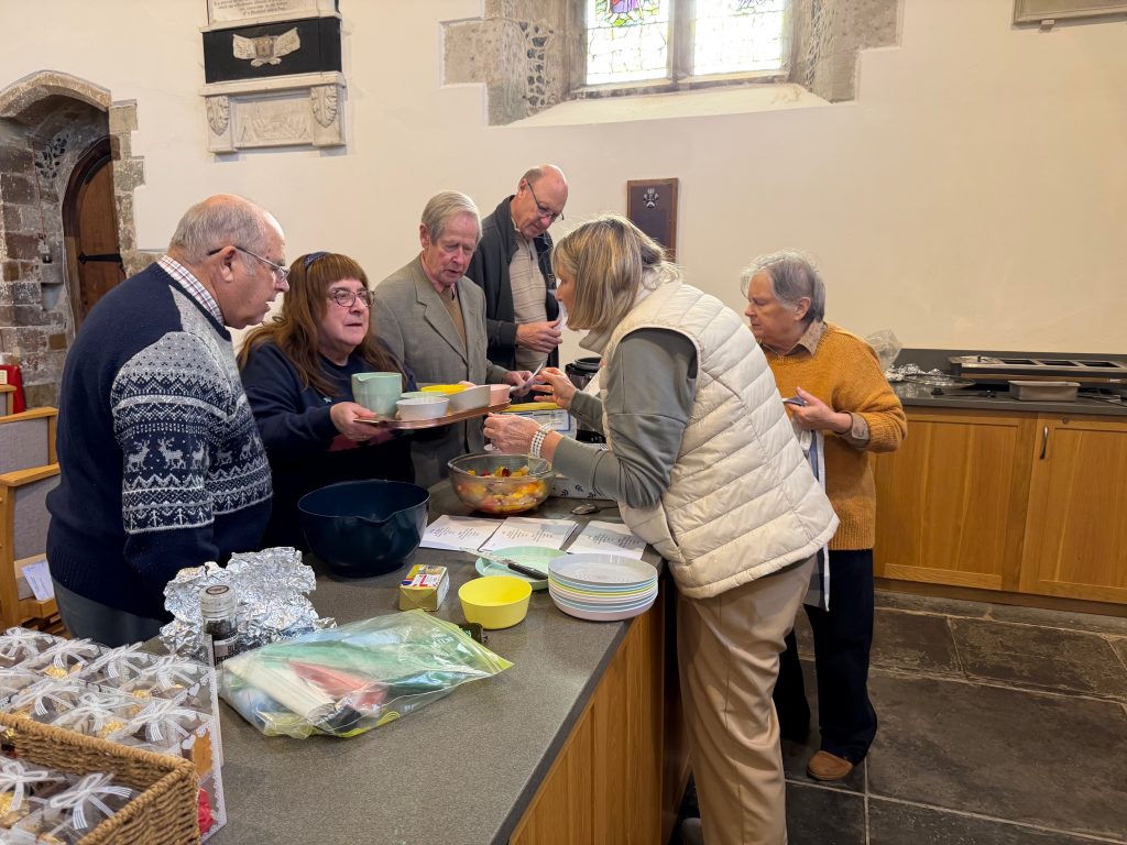 Volunteers from the local Avon Valley Community Matters charity, cooked the two-course hot lunch and each person was given a small gift to take away. It finished with a time of carol singing.