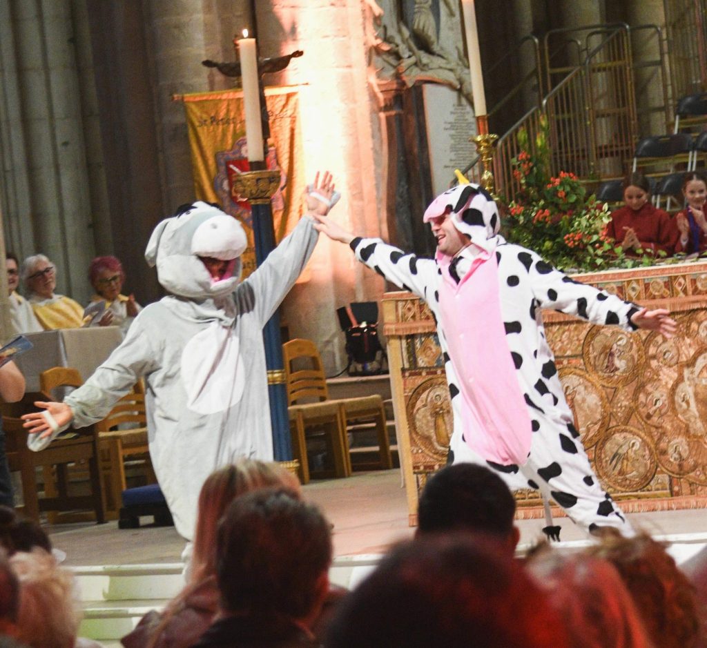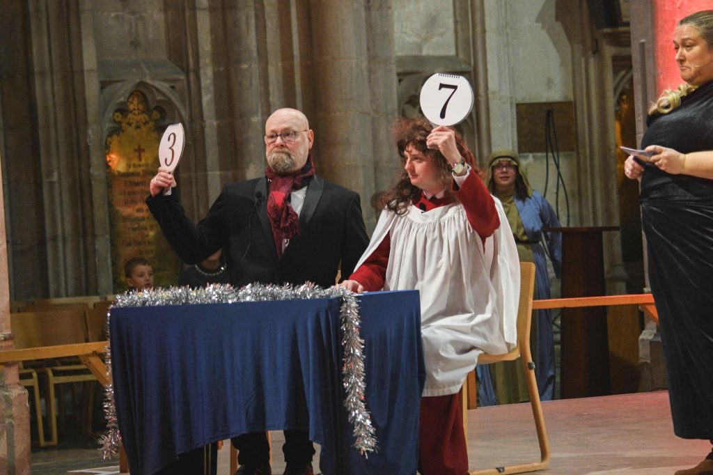 Canon Andrew Micklefield said, “This year we titled the service ‘Strictly Come Christmas’ and had judges, dancers and our very own Claudia Jingleman and Bless Daly. We were treated to an ‘ox and ass jive’, a ‘Two Kings Rhumba’ and ‘Holly Shepherd & Gabrielle Angel’s Couple’s Choice’. All great fun and people left the cathedral with a Keep Dancing feel. This service was held both on 7th and 14th December instead of our usual Sunday Evensong and we had congregations reaching nearly 1000 people at both. It is a key Christmas mission opportunity for the Cathedral and an important step for so many into church which is fun, full and faith-filled.”