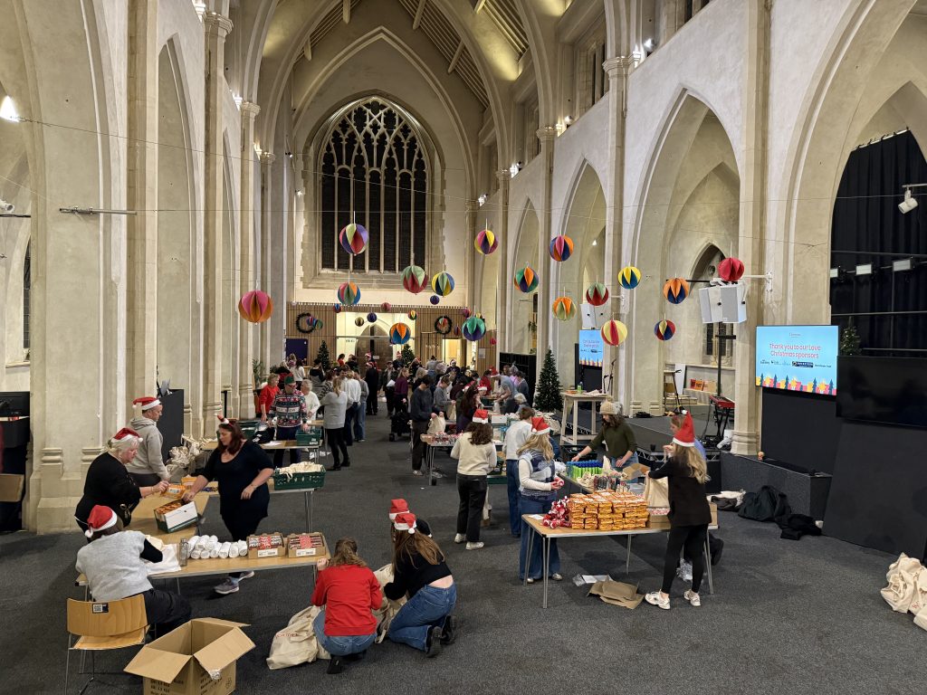 Love your Neighbour lead, Emily Burke said, “It’s really important that we’re the light, that we share the joy of Christmas and show there is hope. Every parcel is going out with an invitation to a two-course Christmas meal at the church so it’s making sure that people know that they can connect into our community. It’s something that we’re good at as a church, ensuring that people feel welcome, they feel loved and seen. We want to make a difference and to push back the darkness and show that there is hope.”