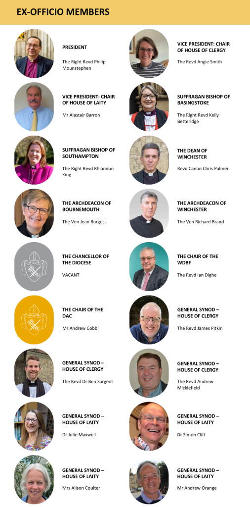 - Ex-officio due to the role that they hold within the Diocese of Winchester