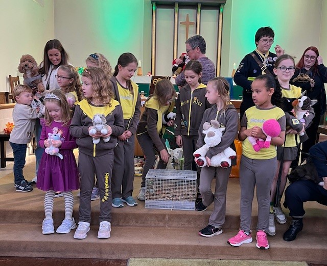 Revd Canon Helen Griffiss, Priest-in-Charge at Holy Epiphany, said, “The Harvest celebration and pet service combined to make a morning of worship and fun for all age groups of people, including Rainbows and Brownies and 20 pets at Holy Epiphany Church in Bournemouth. A tortoise, two snails, guinea pigs and many dogs joined in the worship with humans, to give thanks for God’s wonderful world. The Brownies led the prayers, creating a leaf prayer tree, and our drummer had made bread from local flour which was shared amongst everyone.”