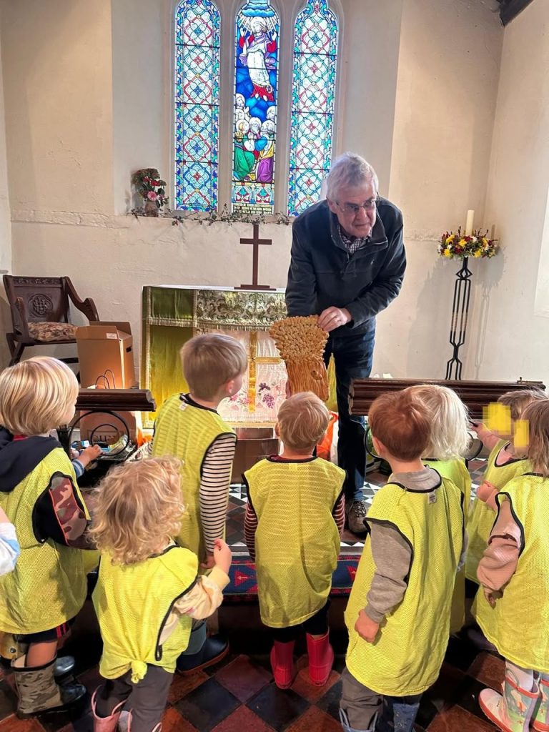 The church of St Peter and St Paul in Shalden welcomed children from the local playgroup, the Shalden Beehive who brought donations of produce and tinned goods for the Alton Foodbank, which were added to those collected by the church congregation.