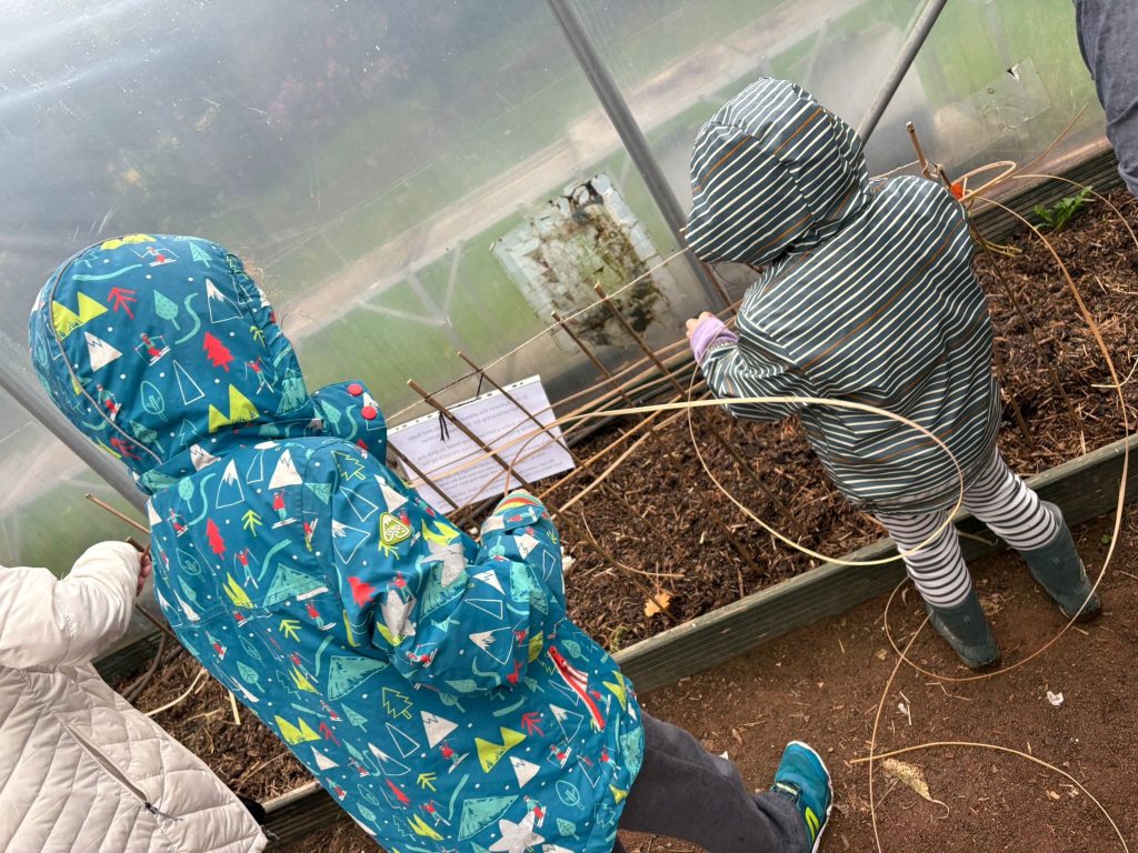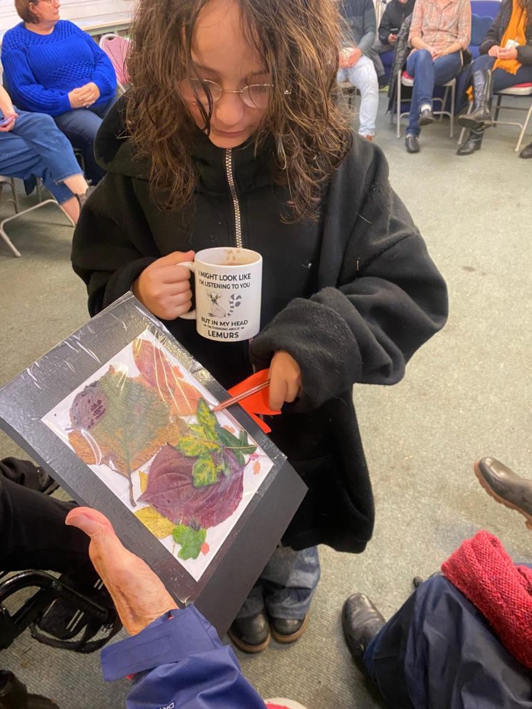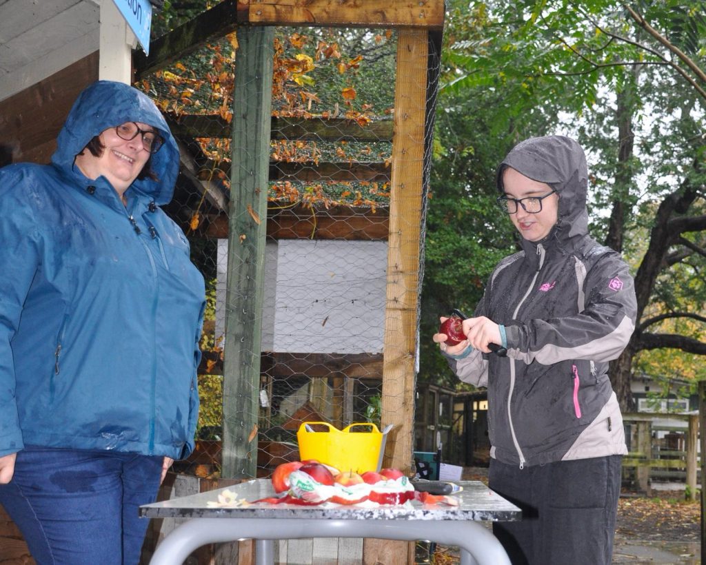 Despite the rain more than 30 people of all ages gathered. Around the farm there were different activities including a challenge to see who could peel an apple to get the longest single piece of peel, making a bug hotel in the garden and making sun catchers with the autumn leaves. There was also an opportunity to meet the animals.