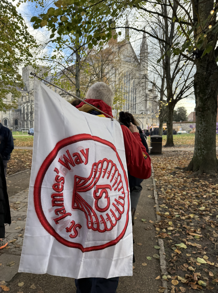 Revd Karen Kousseff, Rector of St Bartholomew’s Church, said, “This is a very exciting moment for us. This church was founded in 1110 and has been welcoming pilgrims ever since then, but from today pilgrims will know that this is a significant place on the international map. It’s a great joy to continue this spiritual heritage of welcoming pilgrims. People do pilgrimages for all kinds of reasons, not just religious, but I hope that when they pass through here, they will find something of the presence of God and strength on their journeys, and that whatever ups and downs they go through in life, God will be leading them and giving them the perseverance and the strength for the journey.”