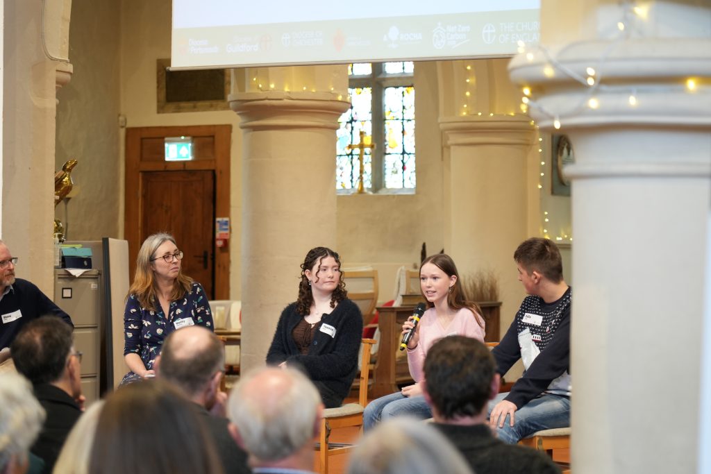 The conference opened with a panel discussion, in which the Bishops of Dorking, Portsmouth and Lewes, along with Archdeacon Richard Brand, outlined their climate vision for the next decade and emphasised that caring for creation is deeply woven into all Five Marks of Mission – telling, teaching, tending, transforming and treasuring.