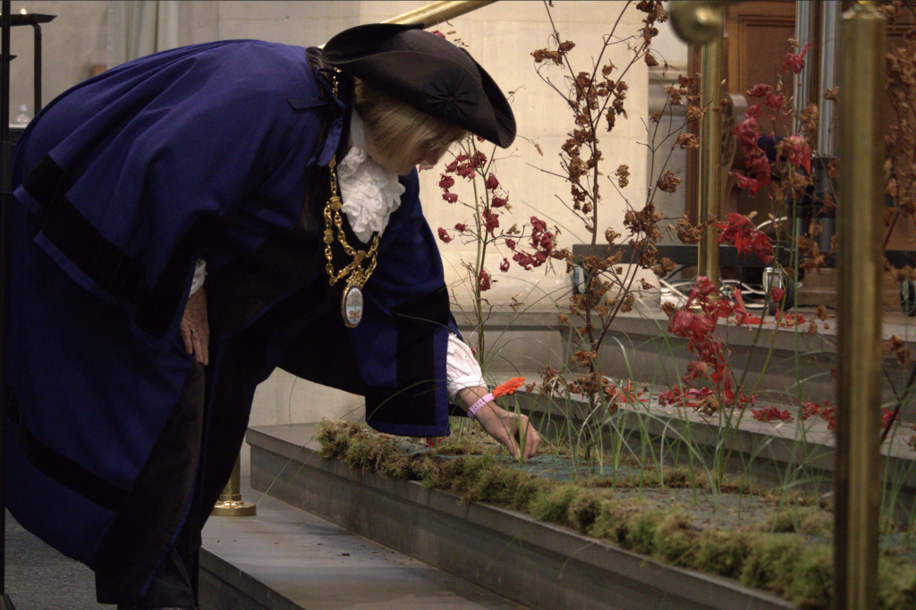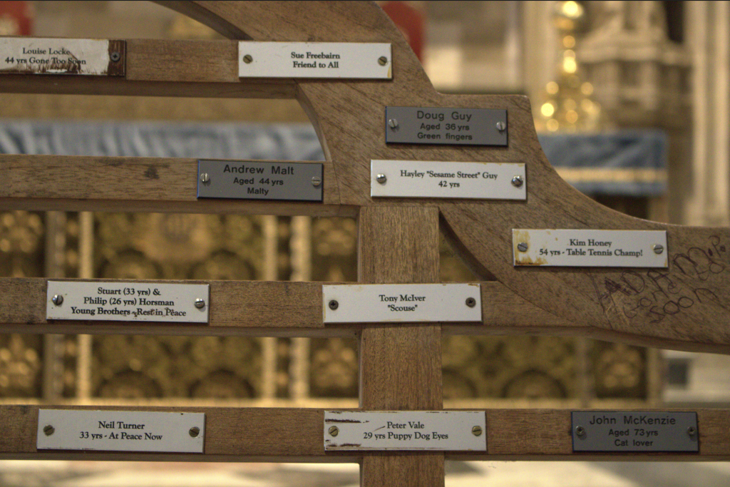 The ‘memorial field’ was part of a commemoration service to honour 27 people whose names were read out. They ranged in age from 88 to just 25 years old.
