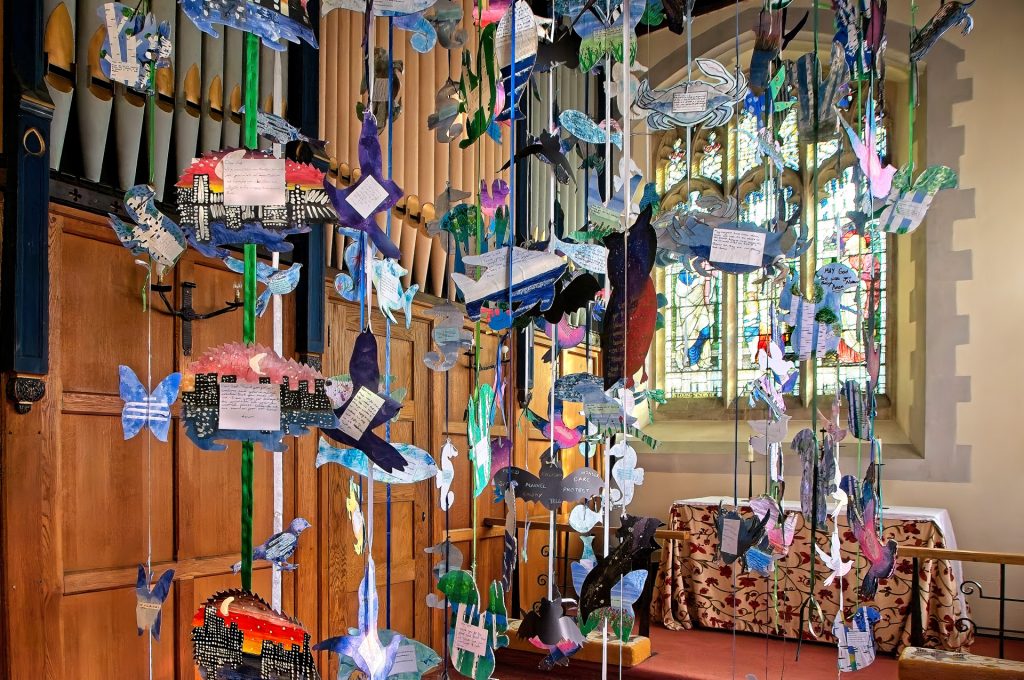 St Mary’s was among a number of churches to display some of the beautiful Tri-Wonder artwork shared by the diocese following its display in Winchester Cathedral. The installation, including prayers and animal shapes made by school children, hung from the church rafters creating a striking symbol during Creationtide.