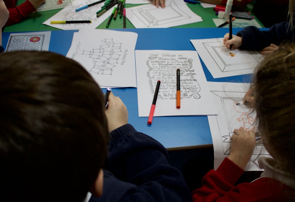 The Church Club this term is focussing on the Lord’s Prayer. At Micheldever, around 15 to 20 pupils will join over the lunchbreak, but numbers have been as high as 35, which is half the school! Lunchtime Church Club regulars Stacey and Caroline said, “We hear bible stories, do activities and learn new things about God and Jesus and how he died for us.”
