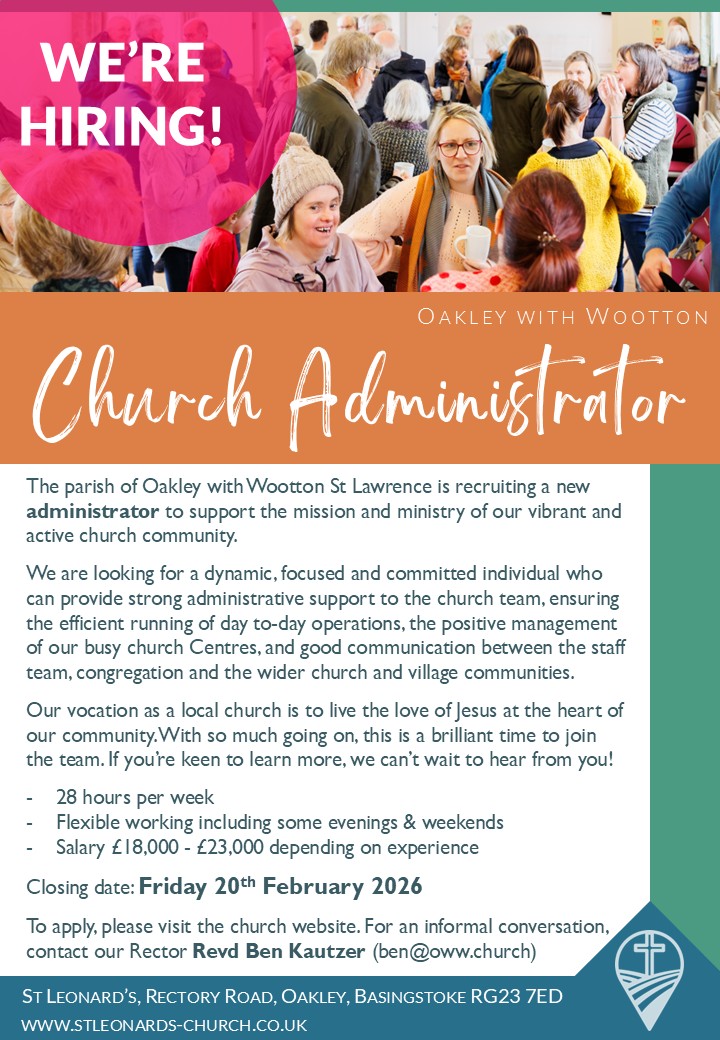 The parish of Oakley with Wootton St Lawrence is recruiting a new administrator to support the mission and ministry of their vibrant and active church community.