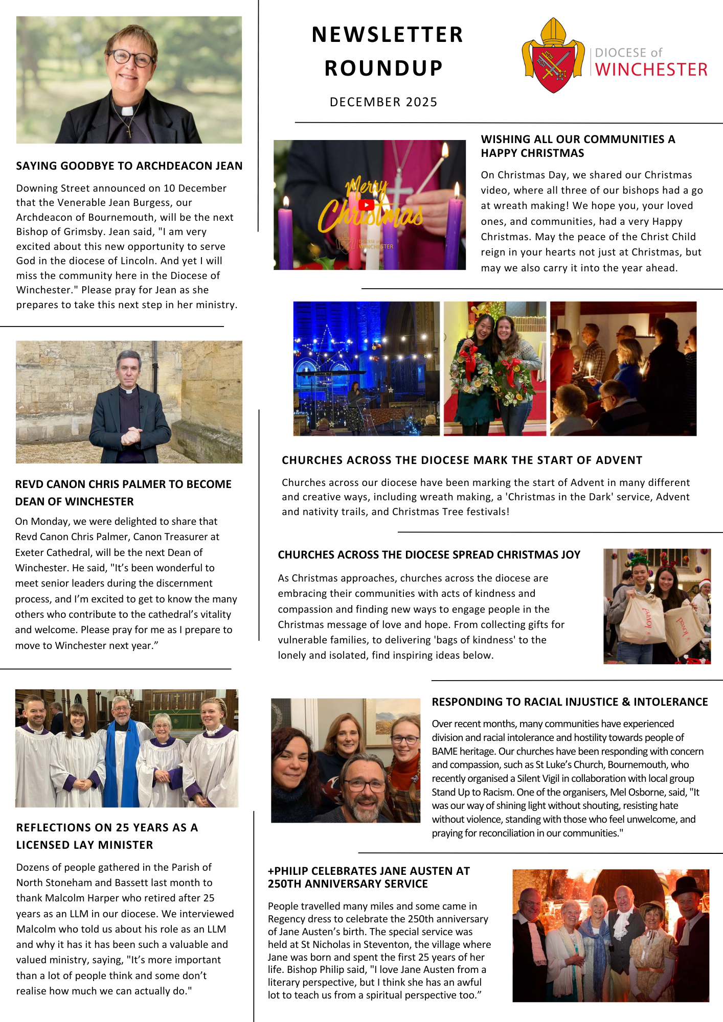 Sign up to receive the weekly newsletter by using the form below or alternatively email communications@winchester.anglican.org.